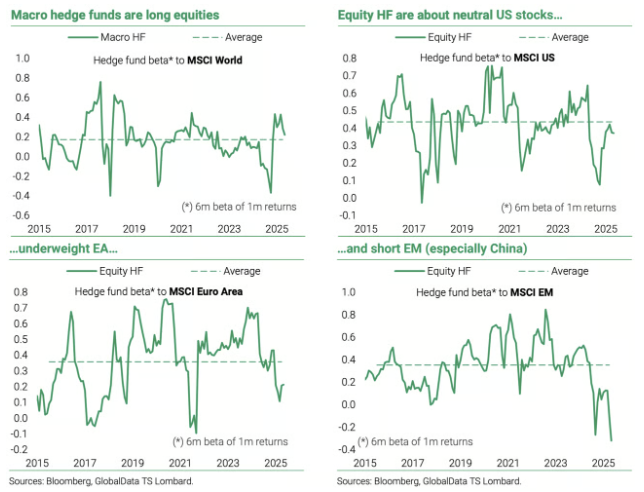 주식형 헤지펀드들의 포지션은 지역에 따라 다소 다르다.