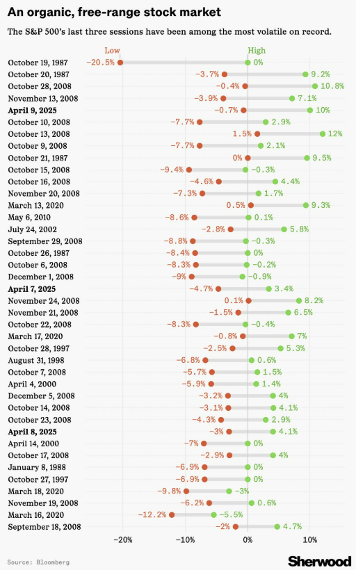 1987년 이후 S&P500 하루 변동성이 가장 큰 상위 32개 일봉 중 3개가 이번주에 나왔다.