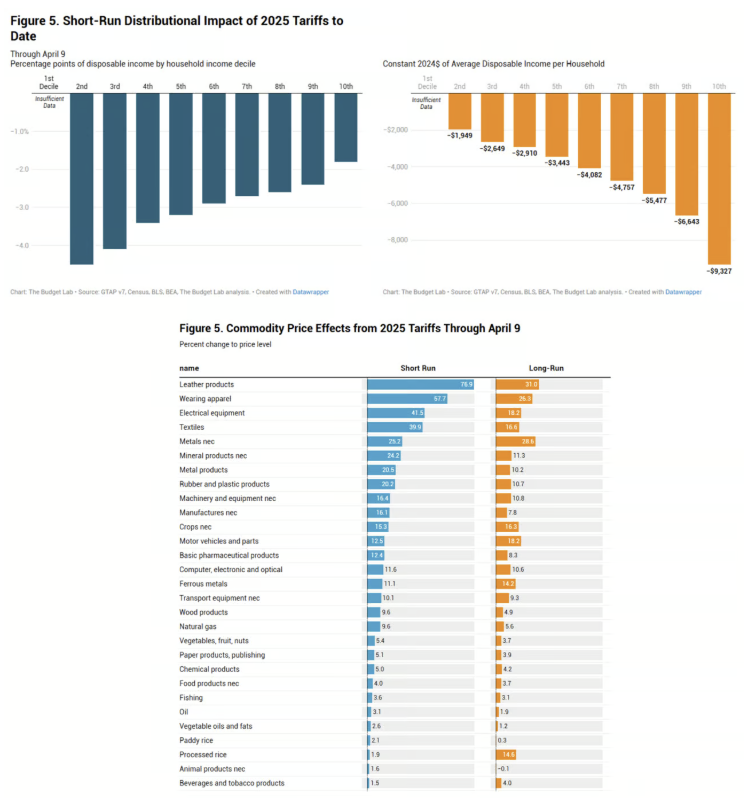 관세는 하위 소득 기구가 상위 소득 기구보다 2.5배 더 큰 소득 영향을 받는다.