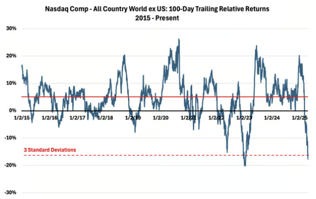 나스닥 Comp 지수는 향후 100거래일동안 미국 전체 주식 대비 초과수익을 올릴 확률이 굉장히 높다.