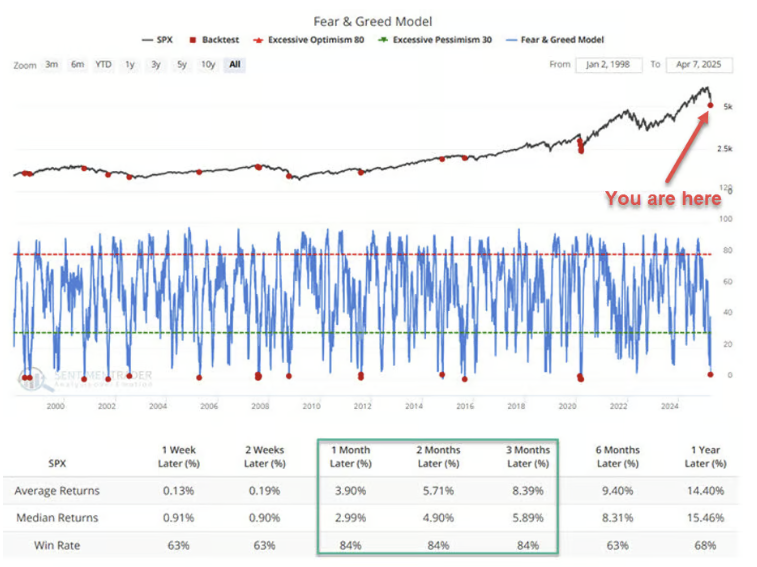 극단적인 폭을 기반으로 한 시장 바닥신호가 발동되었다.