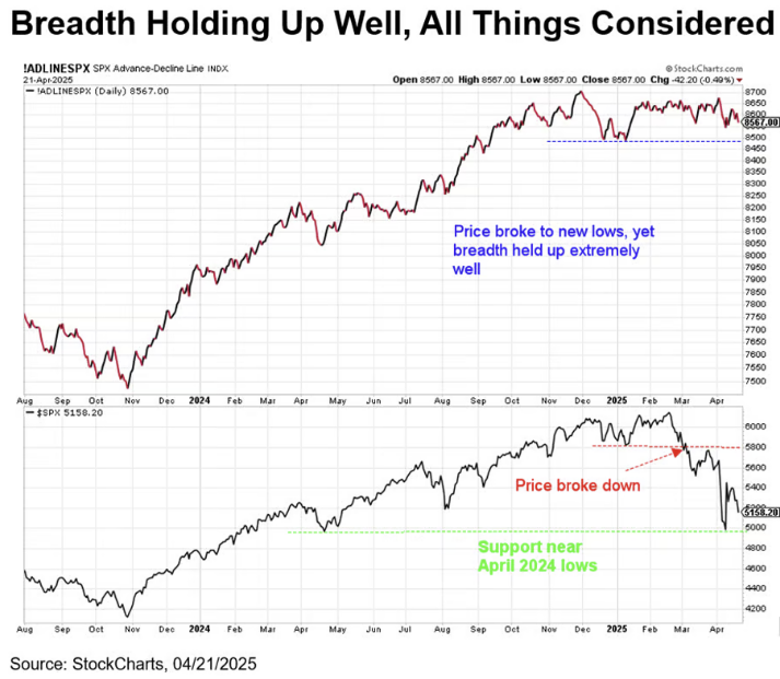 S&P500의 A/D Line은 25년 초 저점을 훨씬 상회하는 수준을 보이고 있다.
