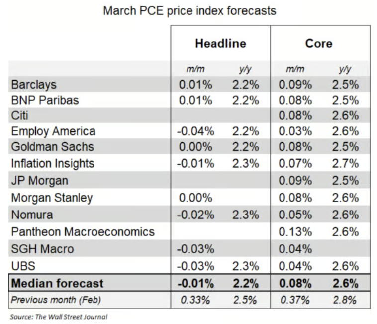 3월의 핵심 PCE 수치가 매우 완만할 것으로 예상한다.