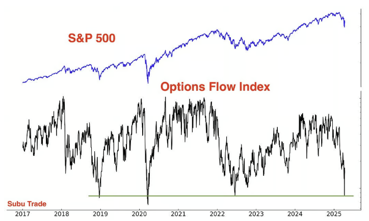 S&P 500 옵션 흐름 지수는 매우 낮다.