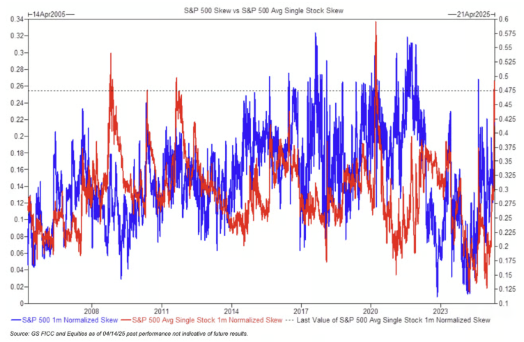 투자자들이 단일 주식 풋 옵션을 매수할 때(즉, 풋/콜 스큐가 높을 때), 이는 심리가 약세를 의미한다.