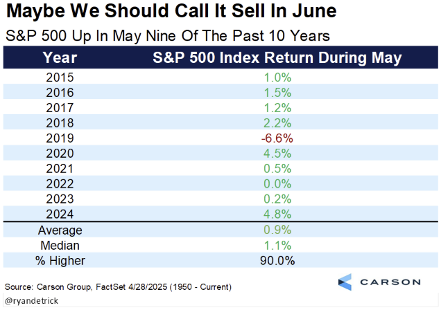 지난 10년간의 사례를 돌아보면 10번 중 9번은 5월에 주가가 상승했다.