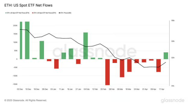 이더리움 ETF에는 8주 연속 순유출이 일어난 상황에서, 급반전이 일어났다.