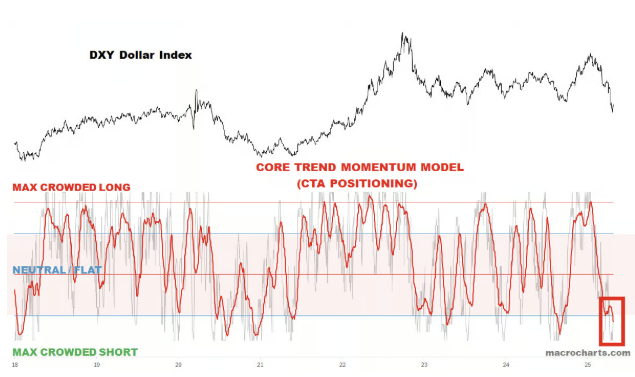 이번주 CTA의 달러 포지션은 더욱 하락했다.