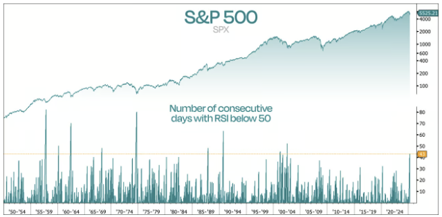 이 정도의 약세는 2002년 이후로 가장 긴 수준이다.